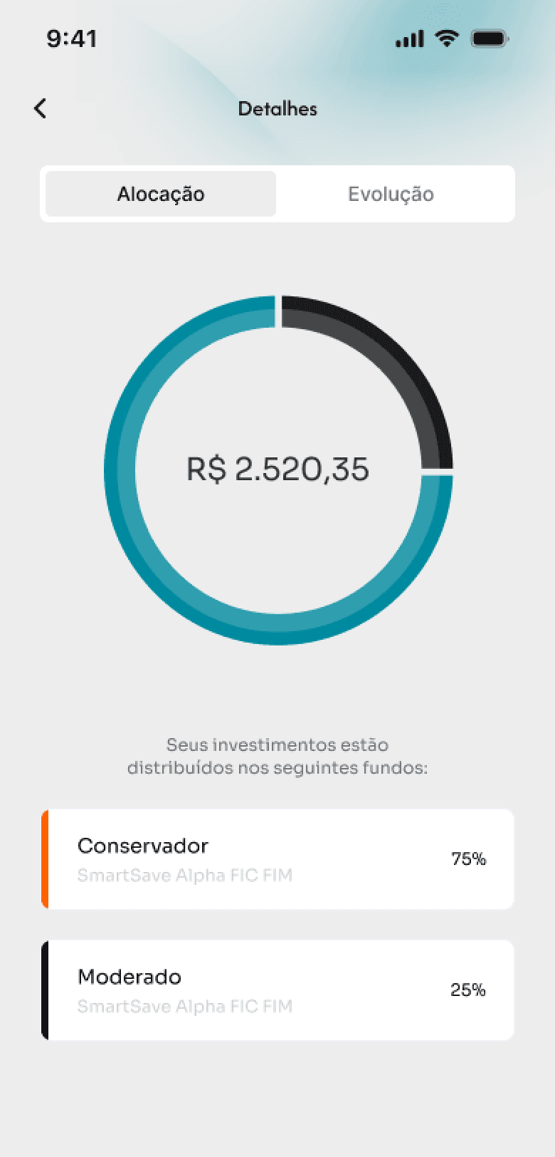 Com base no seu perfil de investidor e no capital disponível, o sistema realiza a alocação estratégica dos recursos, buscando equilíbrio entre risco, retorno e diversificação.